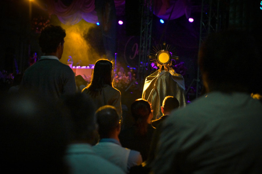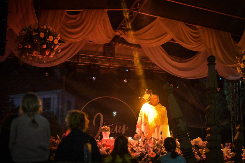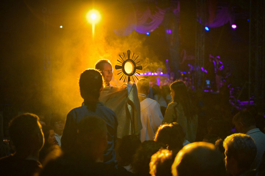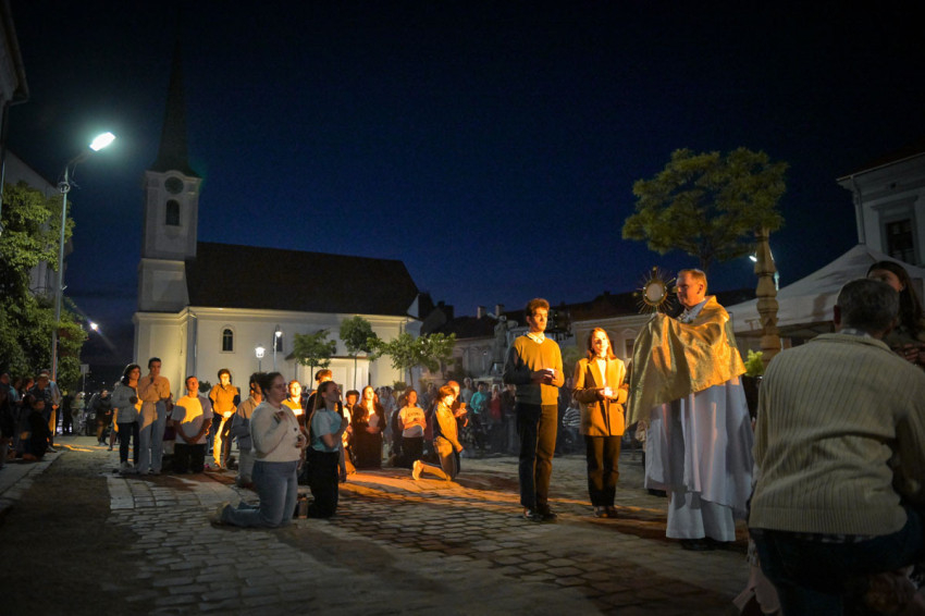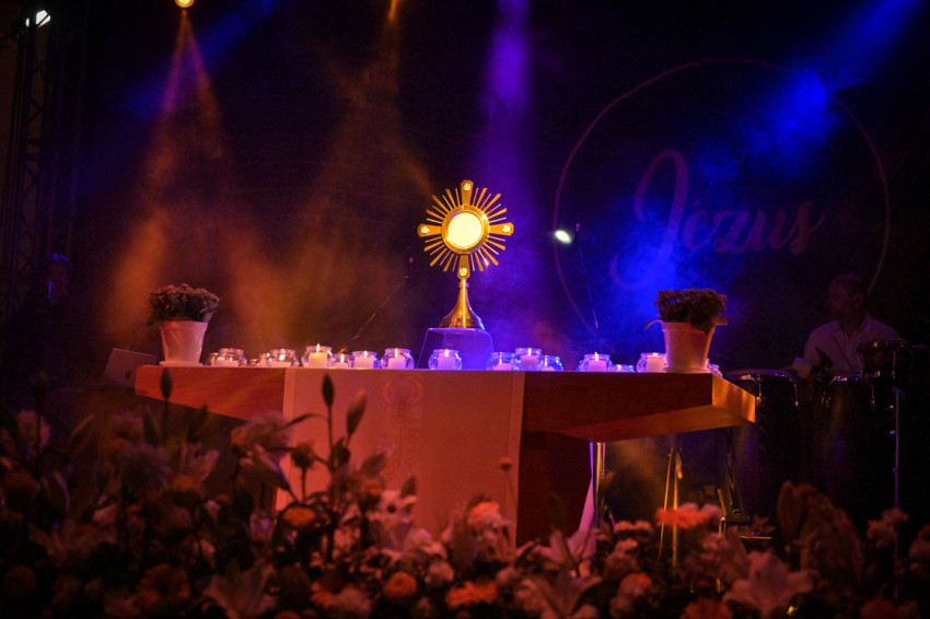 Majd kezdetét vette a dicsőítéssel egybevont szentségimádás.