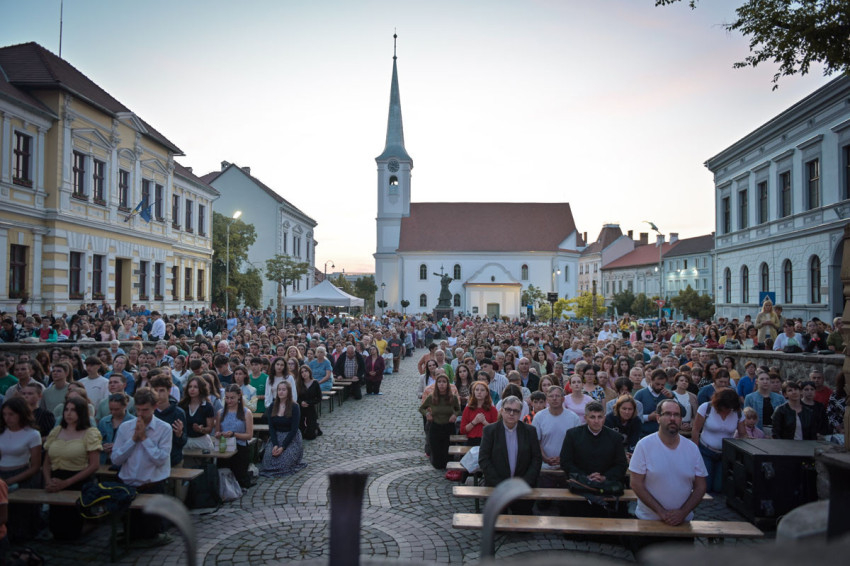 Az este egyik gyöngyszeme két fiatal tanúságtétele volt. Gergely Dávid és Tóth Jácinta osztották meg istenközeli élményeiket – hogy hogyan változtatja meg az Eucharisztia egy fiatal gondolkodásmódját; hogyan értékeljük életünket; mit jelent a halál; milyen Isten gondviselése.