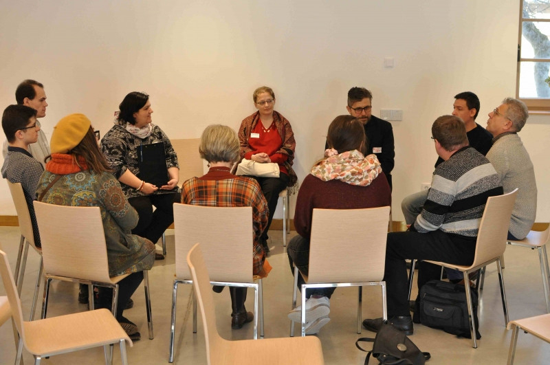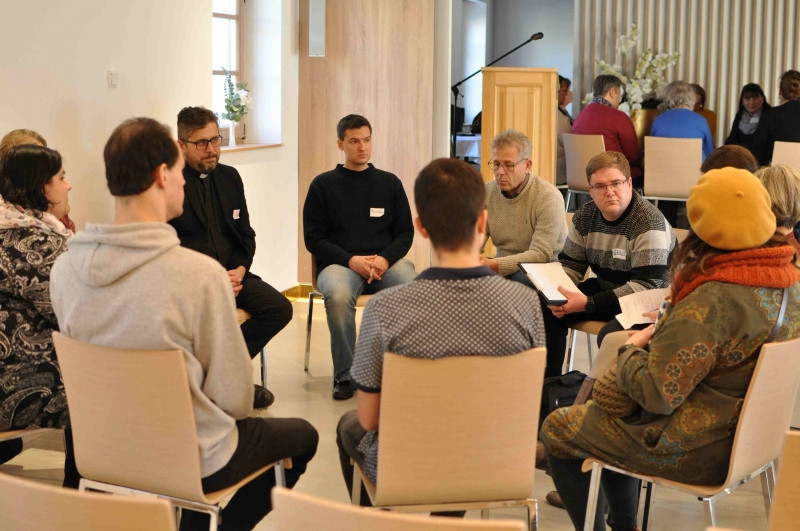 Az ebédszünetet megelőzően közös szentségimádáson vettek részt a jelenlévők. Majd újra kiscsoportokba szerveződtek, ahol az eddigi ima-katekézis alkalmakról volt szó. Az előkészítéssel, lebonyolítással kapcsolatos örömök, nehézségek megosztása mellett a gyakorlati tapasztalatok átbeszélésére is sor került és megosztották egymással jó gyakorlataikat. Ezután rövid fórummal folytatódott a program.