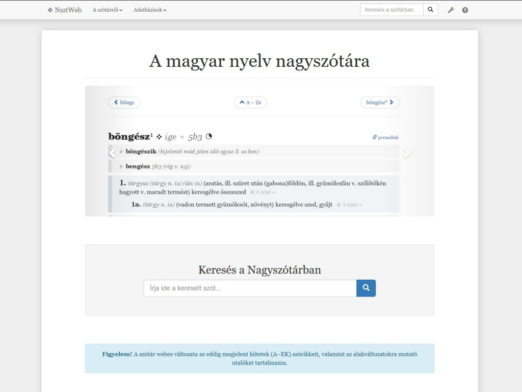A Nagyszótár munkálatai folyamatosan zajlanak, a teljes könyvsorozat elkészülte évtizedeket felölelő óriási vállakozás. Az online szótár tartalma folyamatosan bővülni fog a megjelenő újabb kötetek tartalmával.