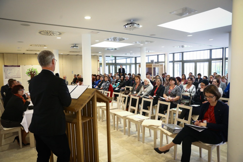 A második nap első előadója Soltész Miklós egyházi, nemzetiségi és civil kapcsolatokért felelős államtitkár volt. Röviden, történelmi példákat sorolva felvázolta, hogy az egyház nagy öröksége a betegek gondozása.