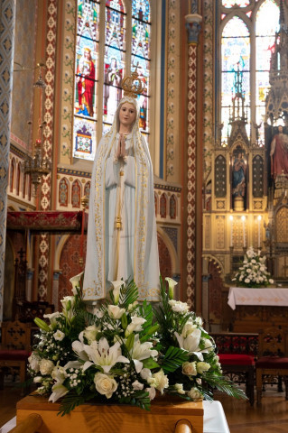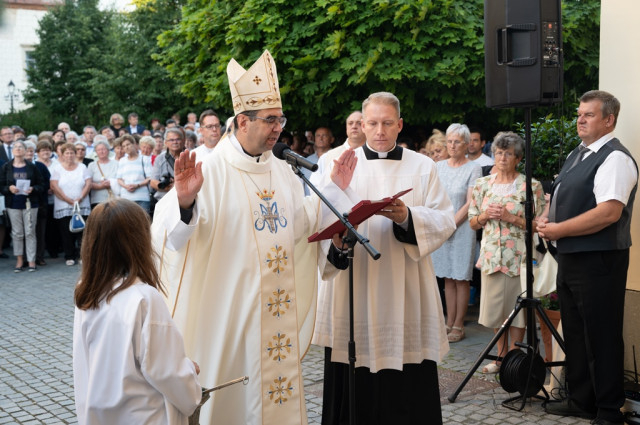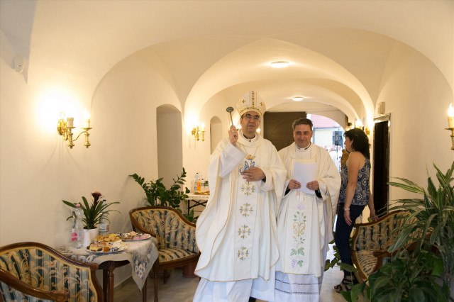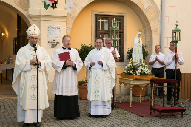 A fatimai körmenet a plébánia épületéhez indult, ahol a plébános felajánló imádsága után a megyéspüspök megáldotta a házat.