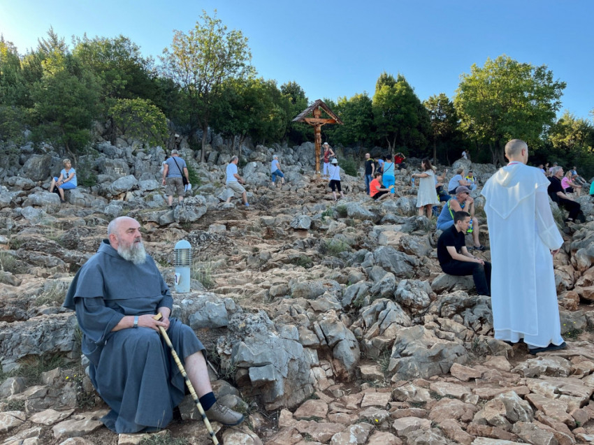 Pénteki napunkat keresztúttal kezdtük a Križevac hegyen. Bár kissé esett az eső, sokan felmentek a hegyre, hogy a meredek sziklás lejtőn felfelé haladva járják végig elmélkedve Krisztus Urunk keresztútját. Néhányan lent maradtak, és a templom mögötti Feltámadt Krisztus-szobor körüli keresztutat körbejárva végezték el imádságaikat.