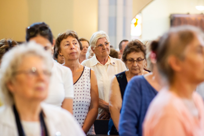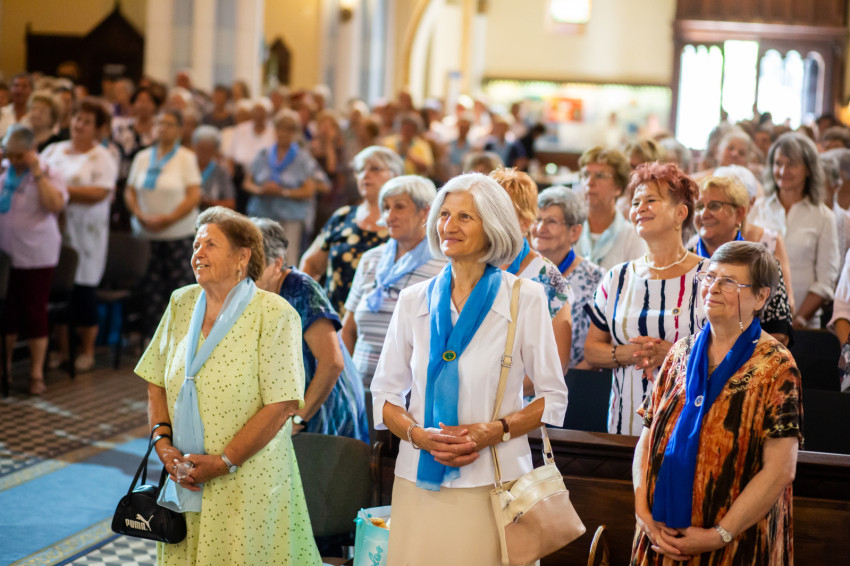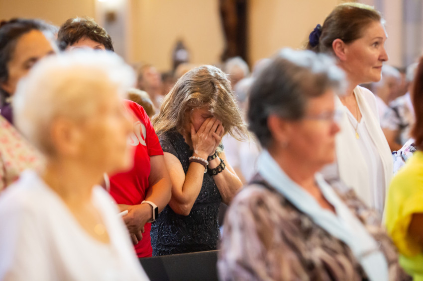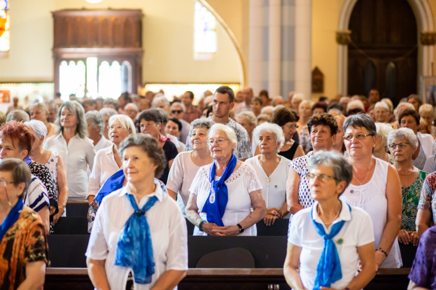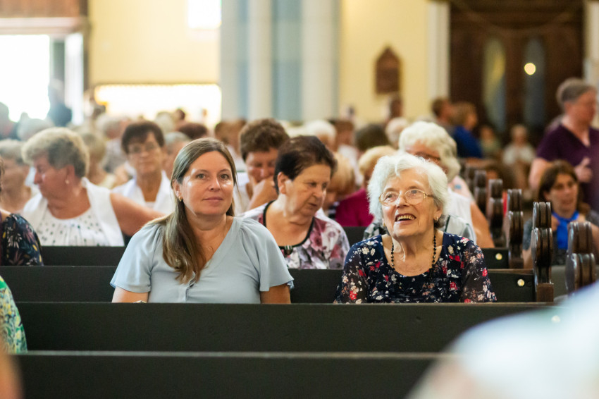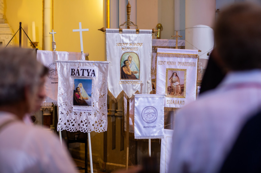 Talán az év legforróbb napja volt augusztus 26., mégis majdnem ezer asszony jött el vagy hatvan különböző plébánia Szent Mónika-közösségeiből az ország számtalan pontjáról, hogy közösen töltekezzenek, elmélkedjenek, imádkozzanak, valamint hálát adjanak a szentmisében, melyen Nagy Károly, a Rózsafüzér Királynéja-templom plébánosa és Kürtösi Krisztián, a közösség lelkivezetője koncelebrált a szombathelyi segédpüspök mellett.