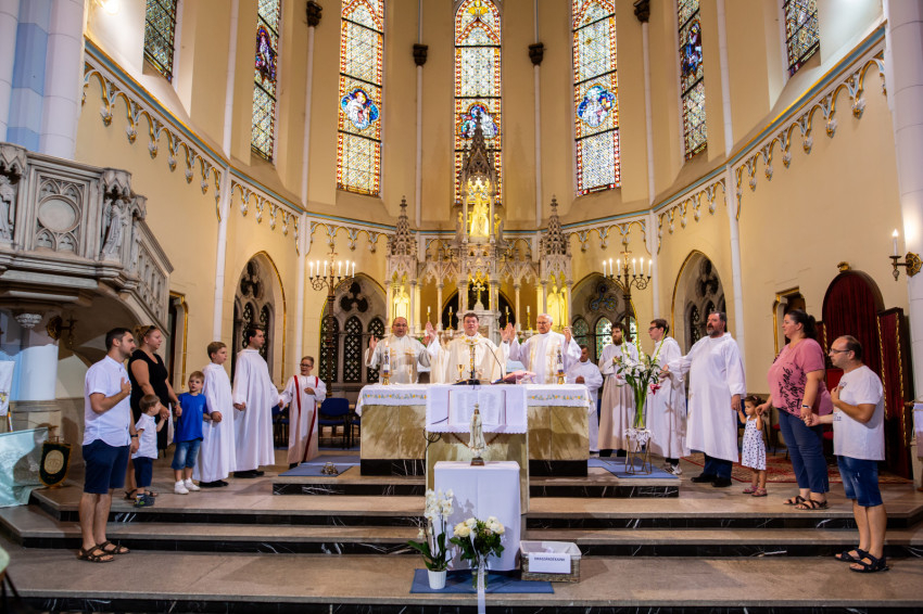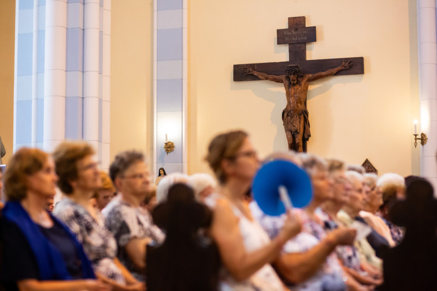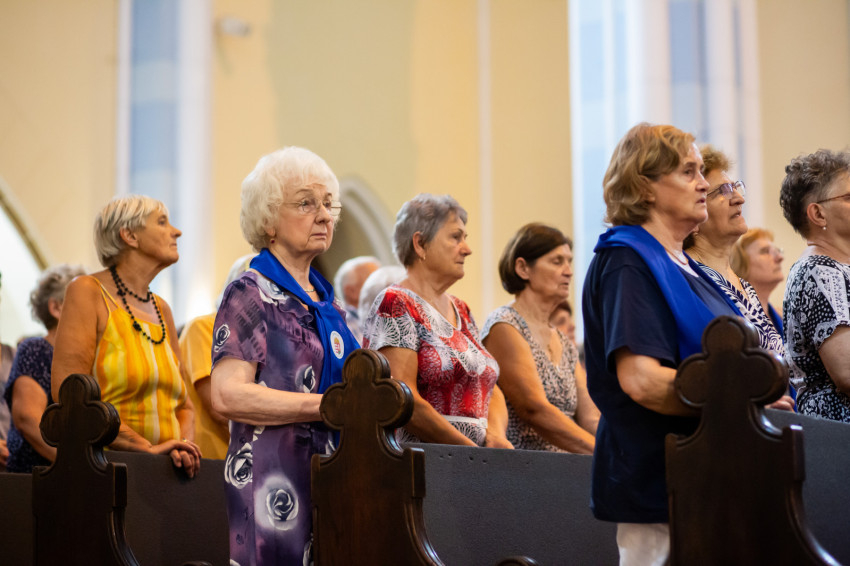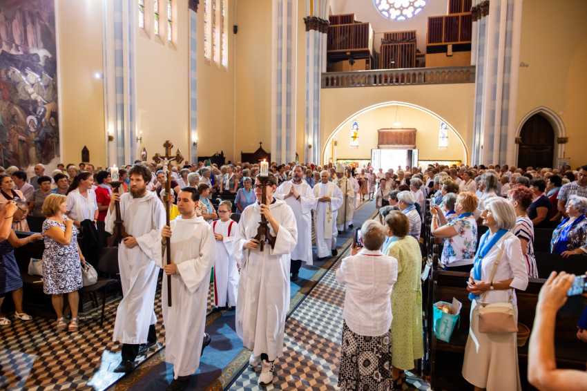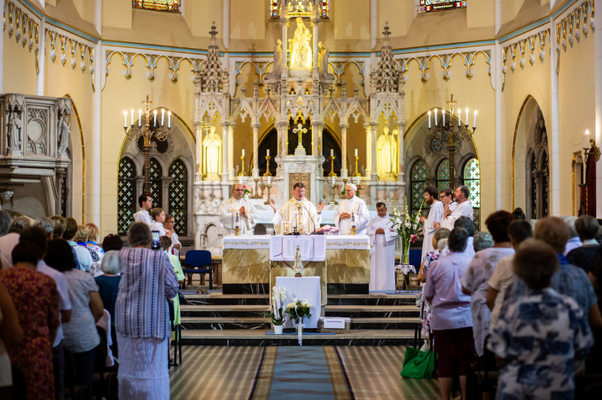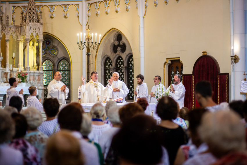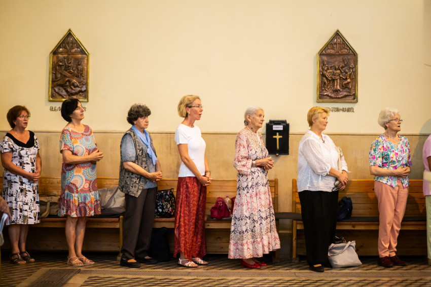 Talán az év legforróbb napja volt augusztus 26., mégis majdnem ezer asszony jött el vagy hatvan különböző plébánia Szent Mónika-közösségeiből az ország számtalan pontjáról, hogy közösen töltekezzenek, elmélkedjenek, imádkozzanak, valamint hálát adjanak a szentmisében, melyen Nagy Károly, a Rózsafüzér Királynéja-templom plébánosa és Kürtösi Krisztián, a közösség lelkivezetője koncelebrált a szombathelyi segédpüspök mellett.