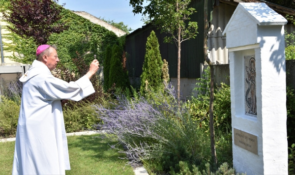 Az üvegmozaik képet, Perlaky József üvegfestő-képzőművész alkotását, valamint a képoszlopot Beer Miklós püspök áldotta meg. A főpásztor imájában Antiochiai Szent Margit közbenjárását kérte a püspöki és káptalani levéltár működésére.