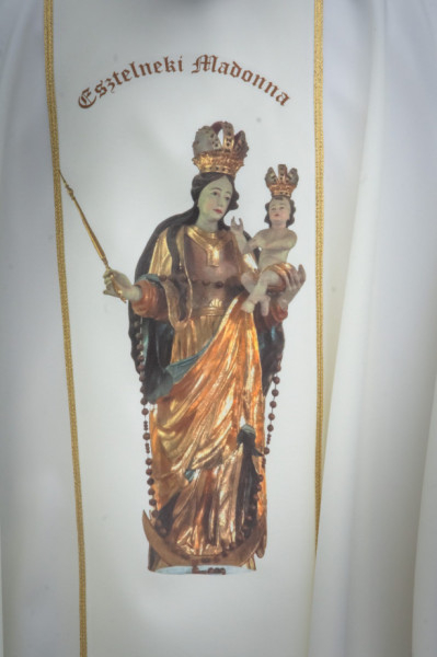 A tűzvész századik évfordulójára a megmenekült Esztelneki Madonna kegyszobráról a ferences testvérek anyaországi és hazai adományozók jóvoltából másolatot készíttettek. A szobrot vasárnap délelőtt Urbán Erik, az Erdélyi Ferences Rendtartomány főnöke a helyi hívek és a nyíradonyi testvértelepülésükről érkezett vendégeik, illetve világi elöljárók jelenlétében tartott szentmisén áldotta meg.
