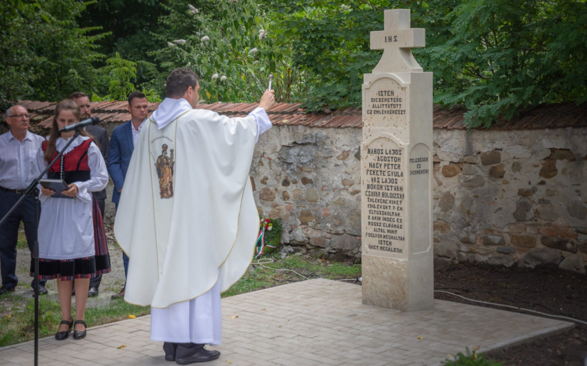A szentmise után a hívek a temetőben lévő felújított világháborús emlékműhöz vonultak. Ott a világi elöljárók mondtak beszédet, és megemlékeztek az Esztelnekről 1916-ban elhurcolt férfiakról, majd Urbán Erik tartományfőnök megáldotta az emlékoszlopot. Az emlékünnepség a himnuszok eléneklésével zárult.