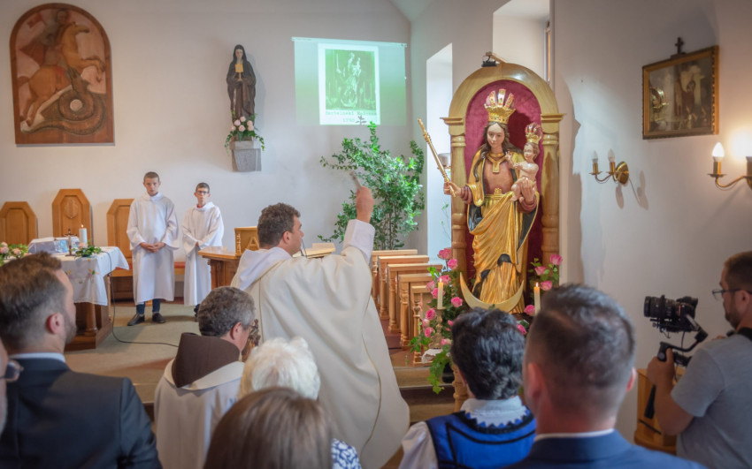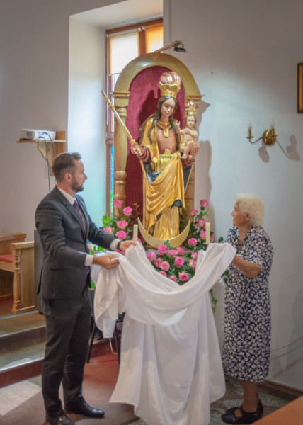 Itt van az elkészült szobornak a másolata is, – amikor beléptek majd a templomba, és miután köszöntöttétek az Oltáriszentségben jelen lévő Úr Jézust –, odamentek majd e szobor elé, kérni a Szűzanya közbenjárását, akkor segítsen a lelki kapcsolat kialakításában” – mondta a ferences szerzetes, majd egy hasonlattal szemléltette, miért van szükségünk a szentek ábrázolására: gyakran magunkkal visszük szeretteink fényképét, és amikor hiányoznak számunkra, akkor a fényképre tekintés segít a lelki kapcsolat kialakításában. Hozzátette: amikor megérint a zarándok egy szobrot, lelki kapcsolatba kerül azzal, akit a szobor ábrázol.