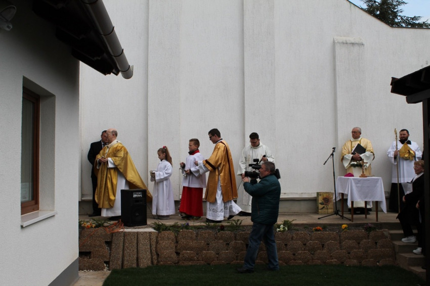 Márfi Gyula plébániakertben mondott beszédéből kitűnt, milyen rövid idő készült el az új épület, hiszen mindössze tíz hónap telt el a tavaly júniusi alapkőletétel óta. A Gillich László mérnök tervei nyomán felépült ház, tetőterében közösségi térrel, harmonikusan összekapcsolódik a templommal, illeszkedve megjelenéséhez. „Legyen ez a ház a szeretet, a béke, az összetartozás, a közösségi építkezés háza” – mondta a főpásztor az épület megáldásakor.