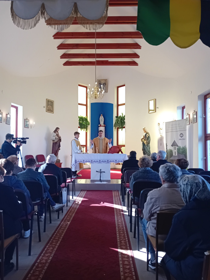 Az ünnepi szentmisét Varga József plébániai kormányzó celebrálta, a mielőbbi békéért és a magyar nép keresztény lélekben való megújulásért ajánlva fel. A szentmisét követően megáldotta az új feszületet, melyet 2024 októberében állítottak fel. A feszület a zarándokhelyet működtető Szentlaposi Szűzanya Kápolna Alapítvány kuratóriumának egyik tagja és családja kétkezi munkáját dicséri, magánszemélyként adományozták azt.