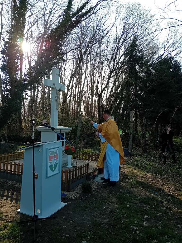 Ezután az ünnepség meghívott vendége, Latorcai Csaba területfejlesztési miniszterhelyettes, parlamenti államtitkár beszéde következett. „A kereszt felszentelése és majdani gondozása a jövőbe vetett hit és remény bizonyítéka is. Mert Európának és benne hazánknak is csak a keresztény értékekből táplálkozó kereszténydemokrata értékek mentén lehet jövője. (...) Napjainkban még inkább igaz, hogy a kereszt nem csupán vallási jelkép, hanem erkölcsi, kulturális és fizikai értelemben véve is igazodási pont” – mondta Latorcai Csaba.