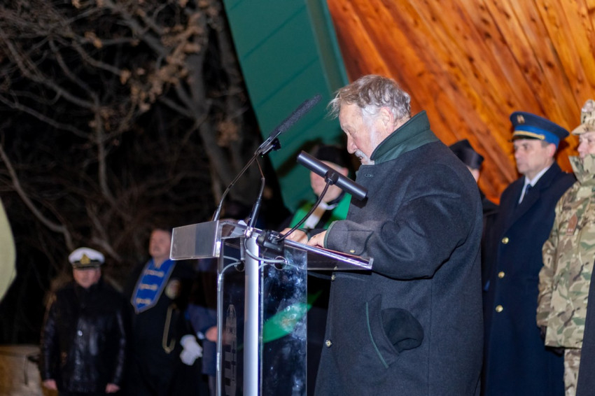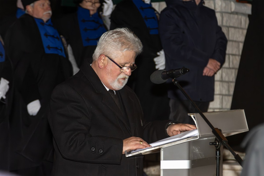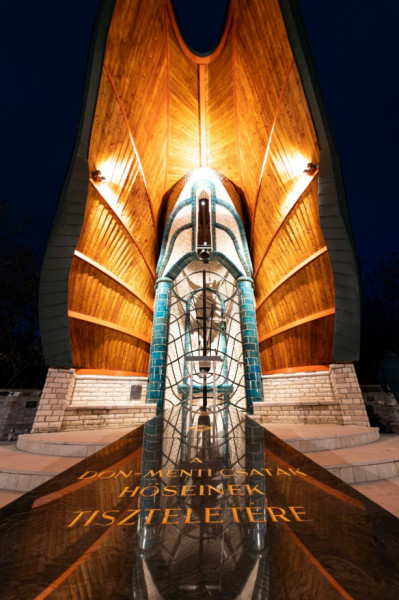„Miután egy vihar megtépázta, most itt áll újraépítve, és állni fog, mert mint ahogy 1993-ban felépült, úgy most is hittel, a szívekben épült újjá!” – emlékeztette a megjelenteket a tisztelgő ünnepség nyitányaként Bobory Zoltán költő, író, a Doni Bajtársi és Kegyeleti Szövetség tiszteletbeli elnöke.