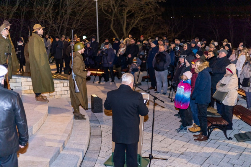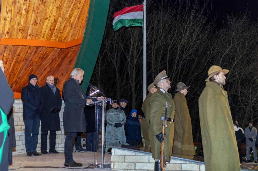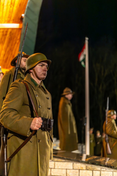 A hideg, metsző szél ellenére sokan tartották fontosnak, hogy a felújított kápolnánál leróják kegyeletüket a hősök előtt. Spányi Antal megyéspüspök megáldotta a gyönyörűen felújított kápolnát, majd a történelmi egyházak képviselőinek imádságai után fellobbant a doni hősök előtt tisztelgő emléktűz.