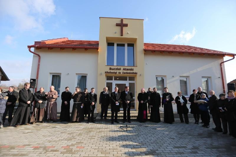 A szentmise után került sor a egyházközségéhez tartozó zarándokház ünnepélyes átadására és megáldására. Elsőként Vinnai Győző mondta el gondolatait. A politikus avatóbeszédében a ház fogalmát emelte ki, amely mint az Isten háza, a zarándokház, az otthon, megnyugvási pontja az életünknek. Ez a hely ad erőt ahhoz, hogy a jövőbe vetett hittel merjük vállalni döntéseinket a példaképeink nyomán. A politikus Buczkó Atanáz atya, ferences szerzetes szolgálatát emelte ki, aki 1956-ban a legnehezebb időkben a templom építésével a jövőt építette. Ma, amikor a Mária-út egyik állomásán zarándokházat adunk át, az ő munkáját, jövő építését folytatjuk – hangsúlyozta Vinnai Győző.
