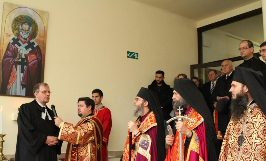 Kocsis Fülöp metropolita köszöntőjében úgy fogalmazott: Jézus nevében mi is ugyanazt tesszük, mint ő. Szolgálunk. Nem véletlenül kapta az épület a Szent Miklós Szolgálóház nevet. Az Isten is úgy szeret minket, hogy szolgál. Nem parancsolgat, hanem kicsinnyé teszi, megalázza önmagát, egészen a kereszthalálig. Az Egyháznak is ilyennek kell lennie: alázatosnak kell lennie, és szolgálnia kell.