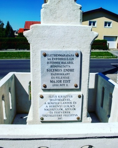 Az egykor önálló falvak, Kámon és Herény határán álló kereszt az elmúlt évek során rossz állapotba került. Idén egy nagylelkű adakozó jóvoltából felújították a keresztet, így ismét a régi szépségében látható, óvja az úton lévőket, és emlékeztet minket a megváltás művére.