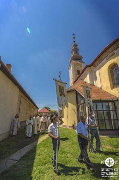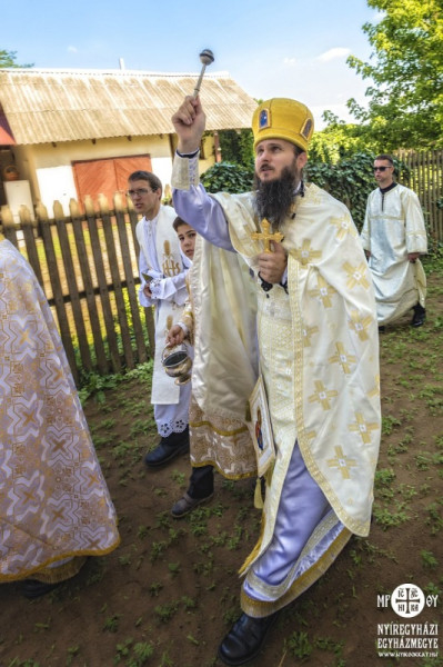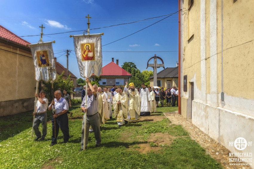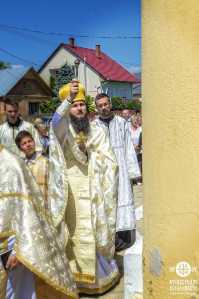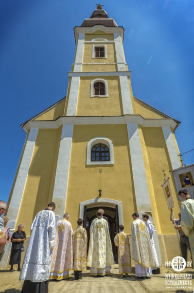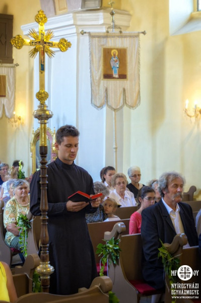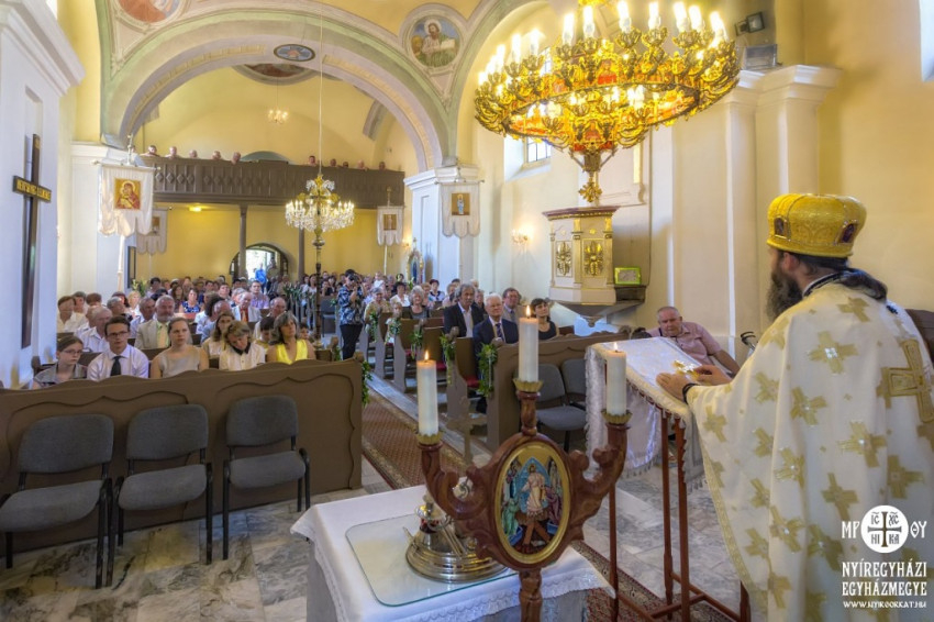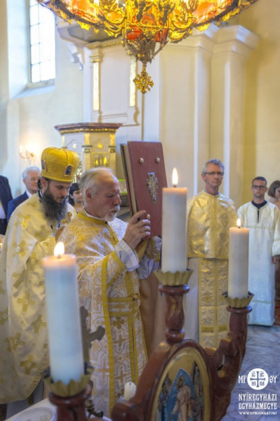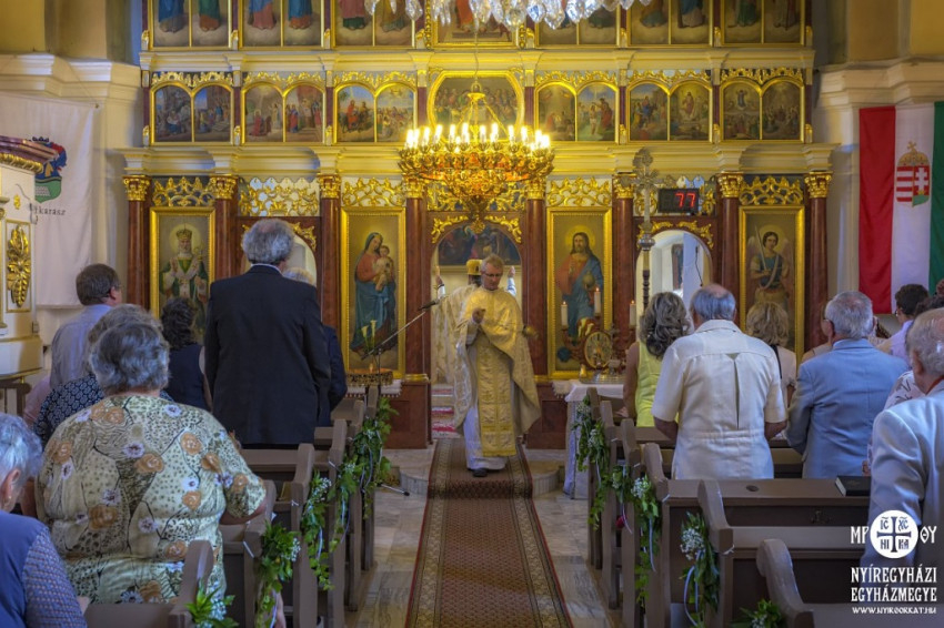 A házigazda Pásztor István nemcsak a templomra, hanem az újjáéledő közösségre is kérte az áldást, hiszen sok feladat áll még előttük, amíg a templom teljes pompájában tündökölhet a bicentenáriumi évre. A Szent Liturgián a házigazdán kívül a karászi esperesi kerület egykori és jelenlegi esperesei: Szabados János petneházi parókus és Seres Péter leveleki parókus, valamint Katona István karászi római katolikus plébános koncelebrált. Meghívott vendégként jelen volt Szalmási József polgármester és Szatmári István műszaki ellenőr, aki Rezsőfi Ágnes tervezővel együtt dolgozott a templom felújításán.
