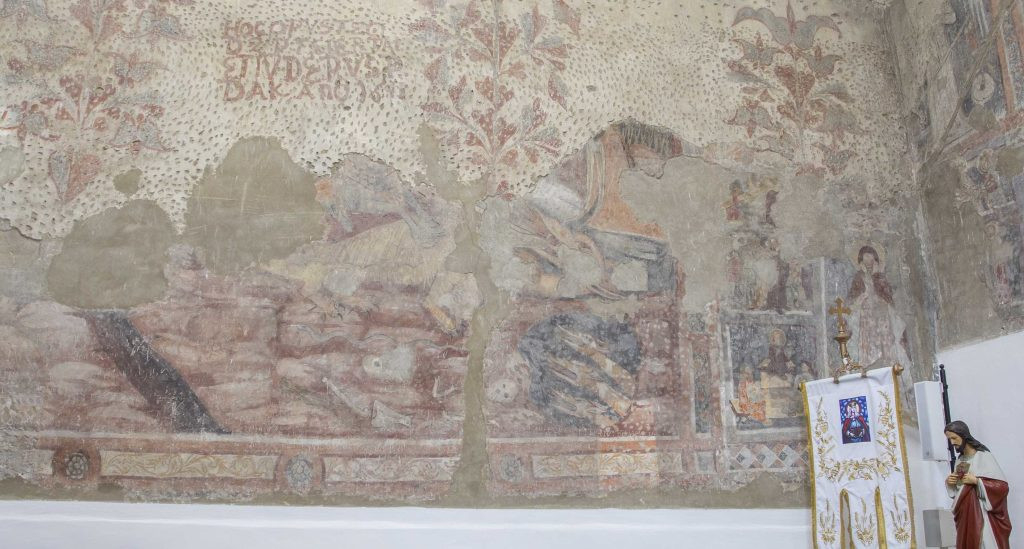 A templom történelmi jelentőségű, kiemelkedő turisztikai célpont is, különlegessége, hogy mintegy 100 négyzetméternyi falfelületen egybefüggő freskó díszíti, amely a 14. századtól a 17. századig, vagy régebben készült. A falfreskókat műemléki kutatás során 1972-ben tárták fel és restaurálták.