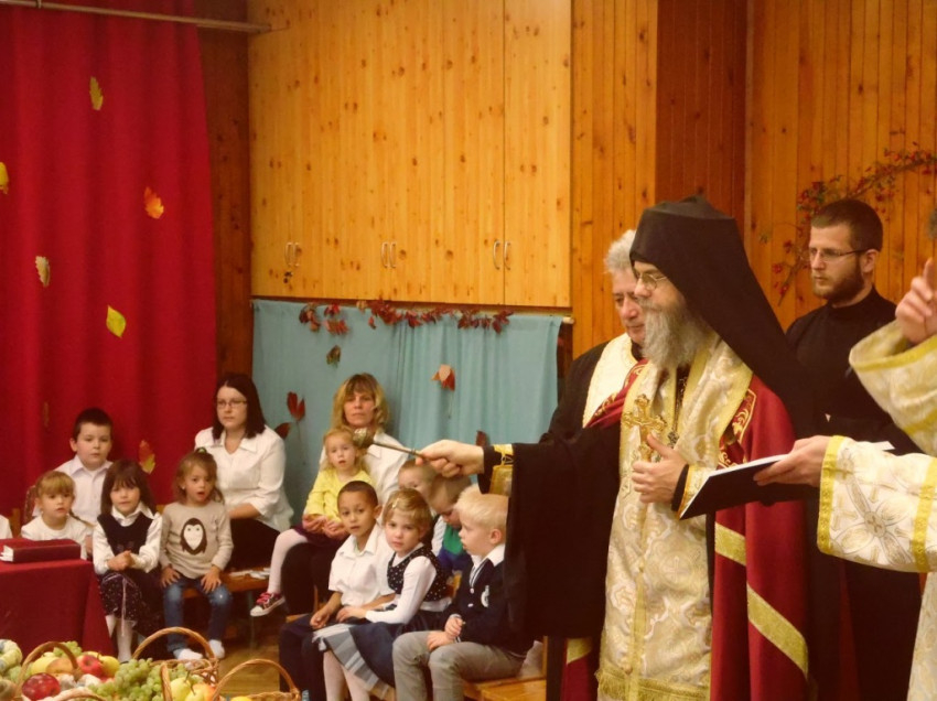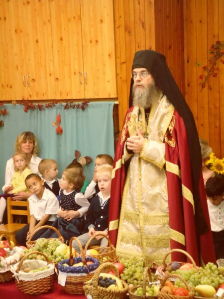 Az épület megáldását az óvoda lelkészének segédletével Orosz Atanáz püspök végezte. A főpásztor az óvodásoknak is elmagyarázta a felolvasott evangéliumot és a szertartás mozzanatait, jelentését, majd a hagyományokhoz híven megáldotta a terméseket, melyeket kis kosarakban hoztak otthonról a gyermekek.