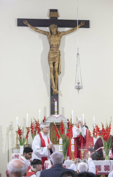 Palánki Ferenc megyéspüspök a szentmise elején, hallva a templomról szóló adatokat megjegyezte, hogy az 1936-ban épült Szent Kereszt felmagasztalása templom egyidős Ferenc pápával, aki 1936. december 17-én született.