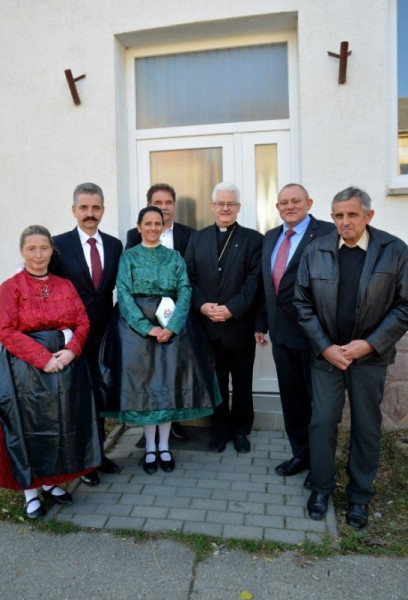 A köszöntők után Spányi Antal püspök megáldotta a templomot. Az ünnepi szentmisében köszönetet mondott mindazoknak, akik együtt összefogva, bármilyen formában részt vettek Vértesacsa legjelentősebb épületének megújulásában. „Ez a templom nemcsak kiemelt helyen van, hanem a funkciója is kiemelt, hiszen Isten dicsőségét hirdeti” – mondta a főpásztor, majd az evangélium szavaihoz kapcsolódva elmondta, a szegény asszonynak a templomban adott két fillérje nem azért jelentős, mert bármit is ért volna a világ szemében, hanem azért, mert ez az asszony mindenét Istennek akarta adni. „Nem arról van szó elsősorban, ki mennyivel járul hozzá például egy templom építéséhez, hanem arról, hogy életünket készek vagyunk-e Istennek szentelni. Mennyit szánunk az ő ünneplésére, eljövünk-e hétről hétre a templomba, hogy kérjük, engeszteljük az Istent, és megajándékozzuk a körülöttünk élőket az Úrtól kapott kegyelmekkel” – hangzott el a beszédben. „Ebben a megújult templomban újítsuk meg szívünket, alkossunk mi is szívben és szeretetben, lelkekben épült nagy közösséget, amely a vallásos hitét gyakorló, imádságban élő emberekből áll. Isten bőséges áldása szálljon erre az egyházközségre, tegye az itt élő lelkeket buzgóvá, örömteli, hívő keresztényekké” – zárta beszédét a főpásztor.