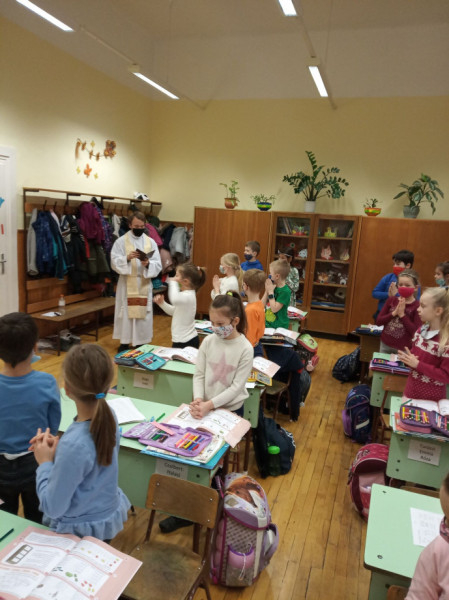 A tanítás megkezdésekor Demeter Sándor igazgató köszöntötte a tanulókat az iskolarádión keresztül, az ünnep jelentőségéről beszélve. Ezt követően Soltész Ádám káplán vette át a szót, aki Krisztus áldását kérte az iskolára, majd Resch Tamás káplánnal együtt végigjárták az épületet, és megáldottak minden tantermet és helyiséget. Ezután szentmisét mutattak be az iskolában, melynek főcelebránsa Szántó József főesperes, apát, plébános volt, aki a kápolna megáldását is végezte.
