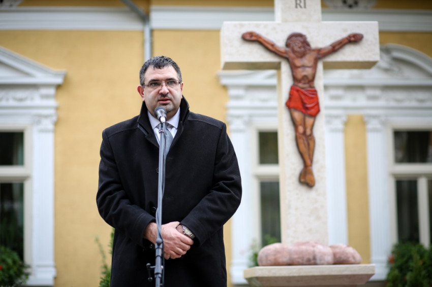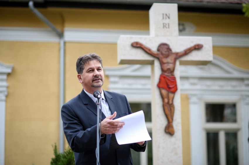 „Ősz elején a szegényekre való odafigyelés rendezvénysorozatát hirdette meg a Karol Wojtyła Barátság Központ azzal a céllal, hogy felhívjuk a figyelmet az elesettekre, segítsük őket a magunk eszközeivel – mondta köszöntő beszédében Molnár Zoltán intézményvezető. – Szeptemberben jótékonysági előadást rendeztünk a kecskeméti ferences templomban, ahol a város fúvós együttesei adtak koncertet. Most keresztet állítottunk, a Szegények Kenyere keresztjét. Jézus kétezer éve tanúskodik a keresztfán, és hirdeti: »Ne féljetek azoktól, akik megölik a testet, mert a lelket nem tudják megölni.« Tanúskodik az igazságról, mert az igazság szabaddá tesz. Jézus igazsága maga a szeretet, a megkülönböztetés nélküli. A kereszt üzenete ennyi: szeressétek egymást!”