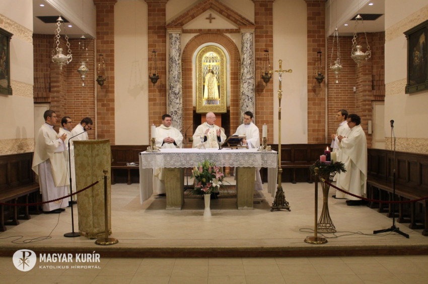 A Collegium Germanicum et Hungaricumból és a Pápai Magyar Intézetből érkező zarándokok a Tolentino városka közelében fekvő loretói kegyhelyen – Szűz Mária názáreti házának őrzési helye – az ünnepséget megelőzően közös szentmisén vettek részt, amelyet Varga Lajos püspök mutatott be.