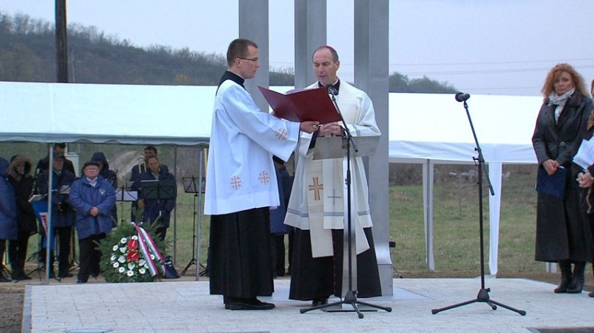 Udvardy György pécsi megyéspüspök a megemlékezésen mondott beszédében így fogalmazott: „Amikor áldást kérünk bármilyen tárgyra, műemlékre vagy egy szoborra, legfőképpen azokra kérjük, akiknek ez sokat jelent, vagy akik számára ez felhívással jár. Isten áldását kérjük. Az áldást, ami vonatkozik a múltra, mint ahogy ez az emlékmű a múltban gyökerezik, de a jövőre irányul. Arra az életre, amit Isten jónak alkotott, és kérjük, hogy ezt az életet szépen tudjuk élni.”