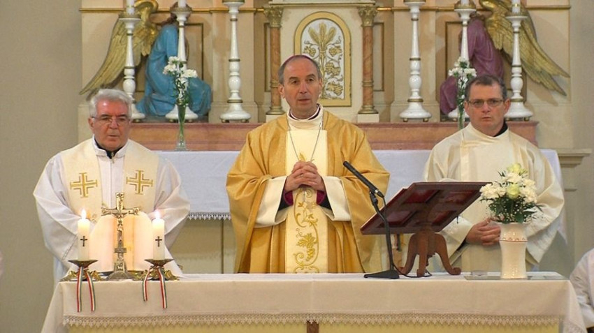 A főpásztor a megemlékezés után a dunakömlődi templomban bemutatott jubileumi szentmisét az áldozatokért ajánlotta fel. „Ünnepeljük a szentet, Szent Imre herceget, a templom védőszentjét, akinek kultusza különösen erősödött a két háború között, erősítve az ifjúságot. Ünnepeljük a szenvedést, az áldozatot, és ünnepeljük Isten szent hajlékát” – fogalmazott homíliájában.