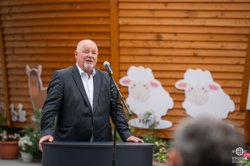 Köszöntőt mondott Hanusi Péter polgármester, aki szerint „a bölcsőde a család ölelő karjának meghosszabbítása, s a legfontosabb, hogy a pici gyerekeknek szeretet adjunk”.