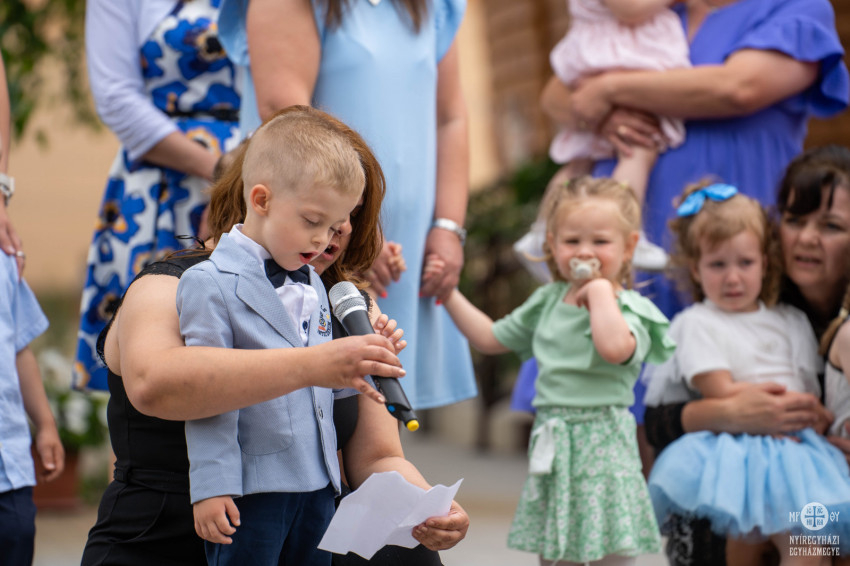 Az új intézmény dolgozói, a bölcsődések, valamint a Mária Kertje Görögkatolikus Óvoda óvodásainak műsora után minden jelenlévő fa emlékplakettet kapott a gyermekek ujjlenyomataival.