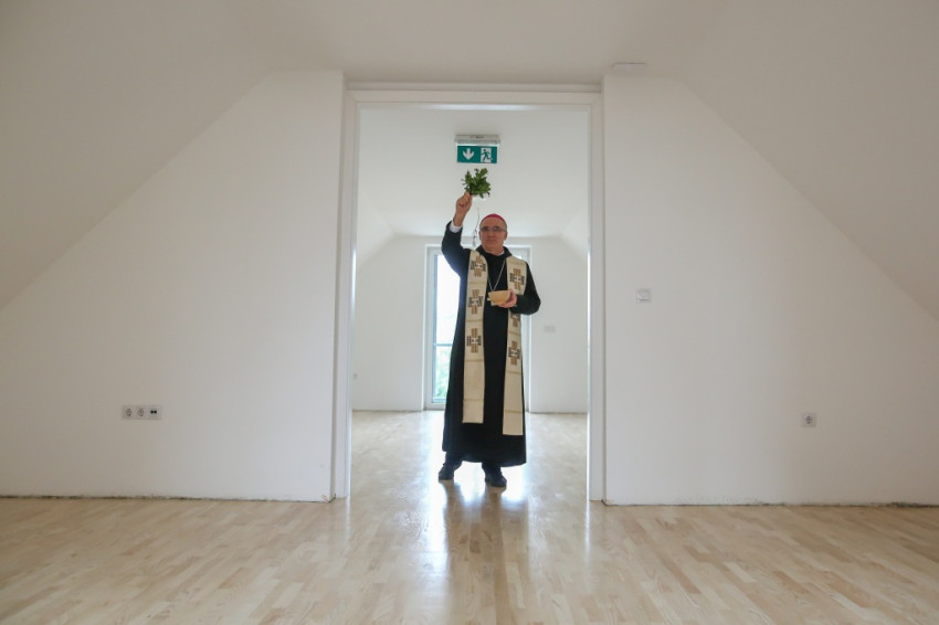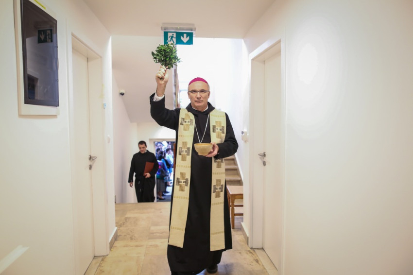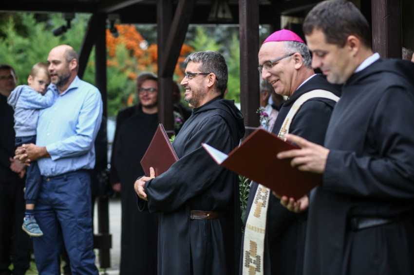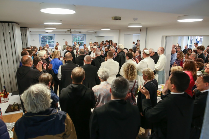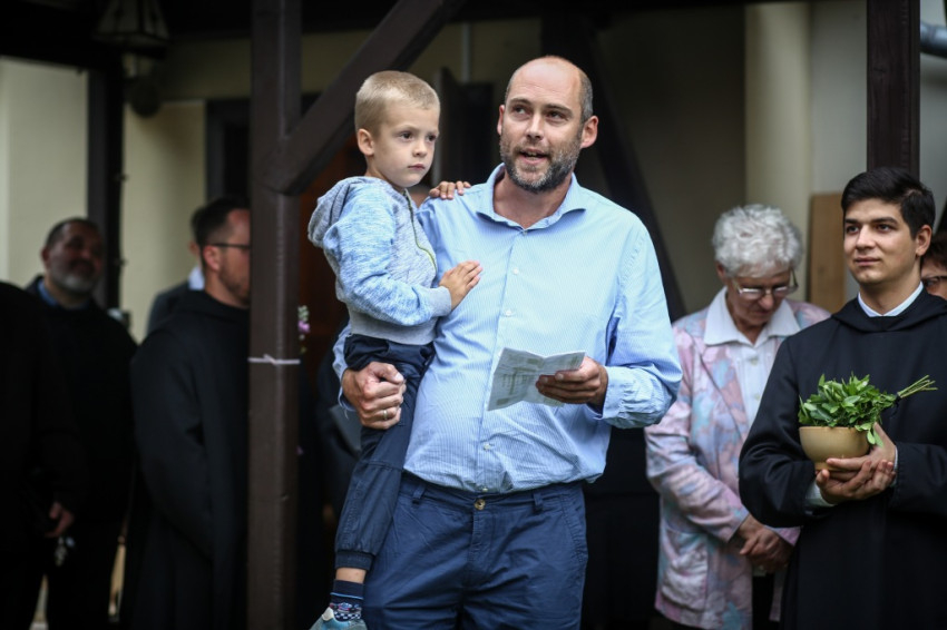Megköszönte többek között Pannonhalmának, Várszegi Asztrik emeritus főapátnak és Hortobágyi Cirill jelenlegi főapátnak az ügy mellett állását; az őket egy évre befogadó Központi Szemináriumnak a vendégszeretetét, és hogy keretet adtak nekik arra, hogy a közösségi életüket folytatni tudják. Megköszönte a szabinás közösséghez tartozó építész házaspár, Klemm Gabriella és Kamarás Bálint munkáját, rugalmasságát, ötletgazdagságát és az eredeti, az 1984-ben az erős politikai ellenszél ellenére is megvalósuló épület tervezőjének, Martin Gábornak a támogatását. A házfőnök felsorolásából érződött, hogy ez az átalakítás-felújítás közösségi projekt volt, amelyben mindenki nagy szeretettel vett részt.