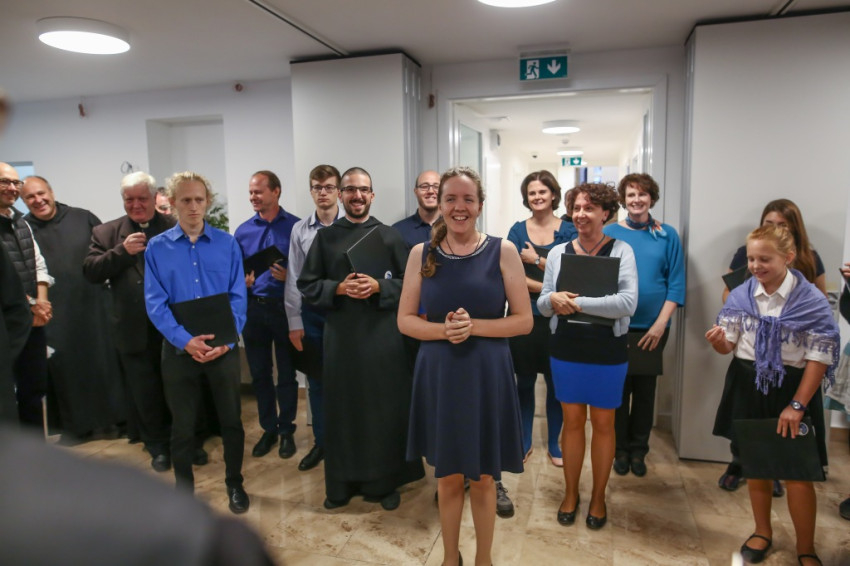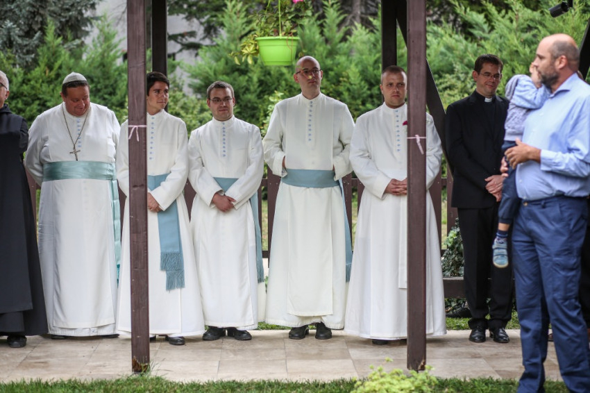 A szombat délutáni ünnep a Szent Szabina-kápolnát a Szent Benedek Tanulmányi Házzal egységbe kapcsoló kerengőben kezdődött.