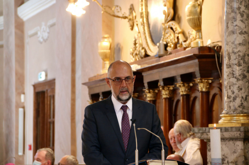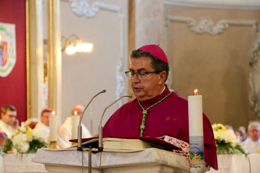 Semjén Zsolt, Magyarország miniszterelnök-helyettese az egyházmegye fővédőszentje, a tegnap ünnepelt Szent István király életpéldájára irányította az ünneplő hívek figyelmét: „Államalapító királyunk élete végén az országot és a Szent Koronát Szűz Máriának ajánlotta fel, és arra hívott mindannyiunkat, hogy népünk történetét üdvtörténetté formáljuk” – mondta. Büszkén említette, hogy az első királyunk egyházszervezői munkája által létrehozott egyházmegyék ezer év múltán is fennmaradtak. Szent királyunk elrendelte azt is, hogy tíz falunként építsenek egy templomot. Magyarország kormánya az elmúlt tíz évben több mint háromezer templomot újított fel és több mint száz újat épített a Kárpát-medencében.