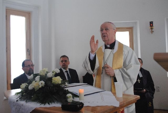 A köszöntők után megáldották a kápolnát, majd Ábrám Tibor, a református egyházkerület főgondnoka tartott rövid elmélkedést.