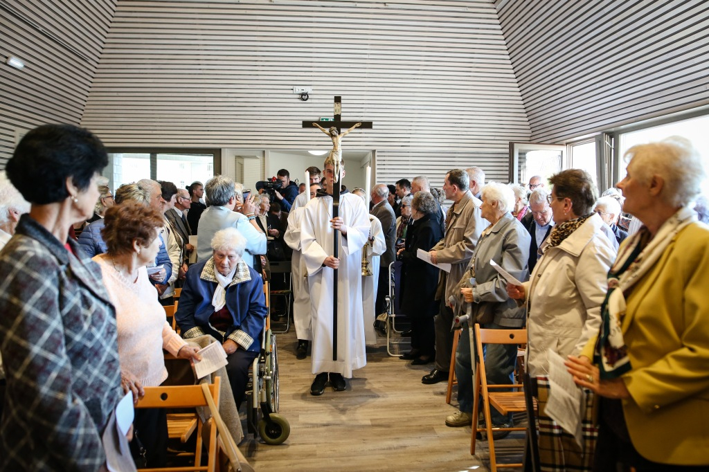 Legyen ez a templom és közösségi ház a megtérésnek, az imádságnak, a Krisztussal való asztalközösségnek a helye. Újítsa meg, töltse el fényével az itt élő közösség egész életét.