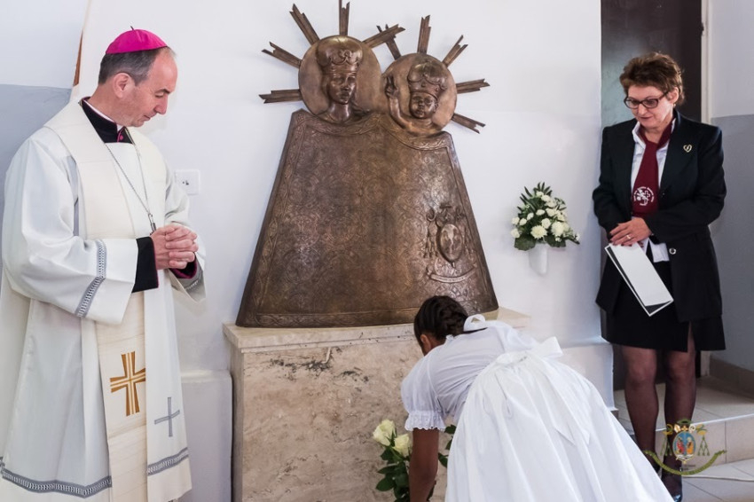 A kápolna felszentelése után Udvardy György megyéspüspök megáldotta az iskolának adományozott Mária-szobrot. 2017/18-as tanév során a Pécsi Egyházmegye öt köznevelési intézményében helyezik el Illyés András szobrász domborművét, amely a máriagyűdi kegyszobor formavilágát idézi. A siklósi iskolában Batki Ottó igazgató mondott köszönetet a műalkotásért, amely az épület aulájában kapott helyet. A szoborral Szűz Mária jelenléte tapinthatóvá válik majd az intézményben, és így mindennap tudatosul a tanulókban és a tanárokban az Egyházhoz tartozásuk.