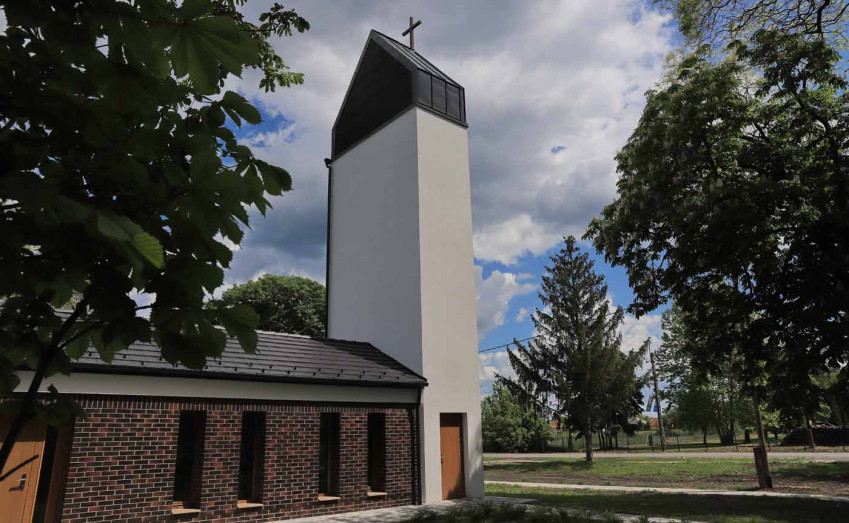 A mintegy 200 négyzetméteres épületet Lipcsei Gábor építész, a település szülötte tervezte. A területet az önkormányzat adományozta a templom építéséhez, illetve a templomkert és környezetének megújításához szükséges munkálatokat is a település végezte. A belsőépítészeti részletterveket Horváth Péter Kornél belsőépítész készítette, a képzőművészeti alkotások Kovács Jenő szobrászművész munkái.
