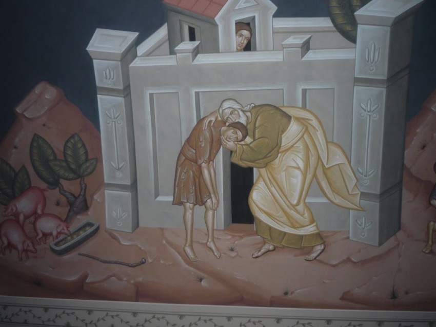 Az egyik freskó a tékozló fiú történetét idézi fel, a másik oldalon látható festményen az Úr Jézus megáldja a gyermekeket. Ezt a témát Makláry Zsolt festőművész javasolta; a kupolában, a templomhajóban és a szentélyben lévő ikonok is mind az ő keze munkáját dicsérik – mondta el Jeviczki Ferenc.