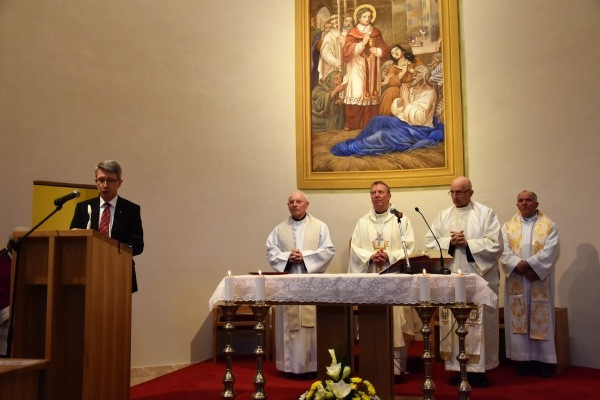 A szertartás elején Hirling András, a kórház igazgatója köszöntötte az egybegyűlteket, köztük a szentmisét celebráló Beer Miklós váci megyéspüspököt; Kozma Imrét, a Betegápoló Irgalmasrend magyarországi delegatúrájának vezetőjét; Joachim Mačejovský OH provinciálist, illetve a magyar kormány képviseletében Rétvári Bence államtitkárt.