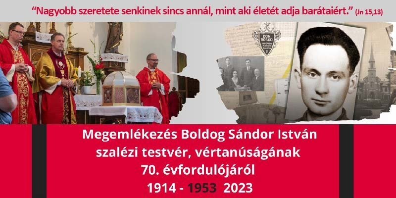 Boldog Sándor István vértanúságának 70. évfordulója alkalmából június 8-án az újpesti Clarisseumban (1045 Budapest, Árpád út 199.) ünnepi megemlékezést tartanak, melynek programja: