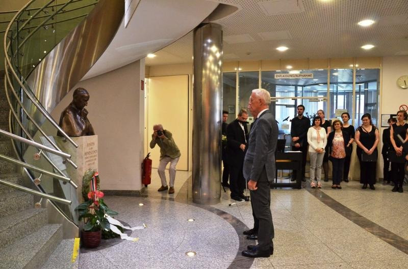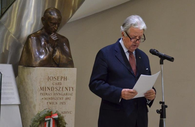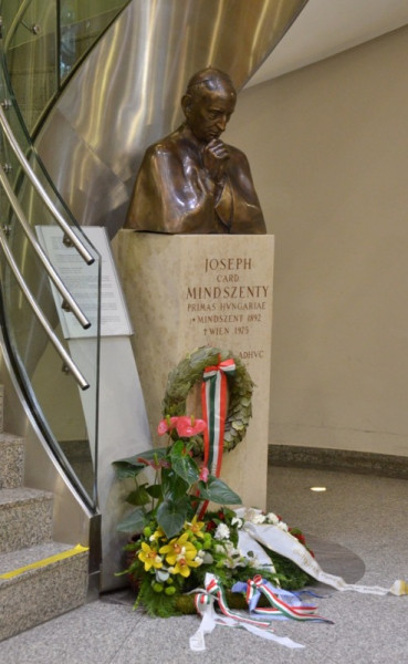 Varga János, a Pázmáneum rektora köszöntőjében felidézte Mindszenty József hercegprímás alakját és erényeit. Idézte az idei esztergomi emlékmise szónokának, Snell György segédpüspöknek szavait: „életszentsége a püspöki szolgálat hozta mérhetetlen szenvedésekben, megaláztatásokban teljesedett ki. Példakép ő mindnyájunknak: a hit, az önfegyelem, a másokért élő szeretet példája.” Emlékeztetett rá, hogy a hazáját elhagyni kényszerült főpásztort sokan tisztelik az osztrákok körében is. Az Irgalmasrendi Kórház aulájában, kiemelt helyen 2006 óta áll Mindszenty Rieger Tibor által készített szobra. Talapzatán a Franz König bíboros, bécsi érsek által mondott temetési búcsúbeszédben elhangzott szentírási idézet olvasható: „Defunctus adhuc loquitur”, azaz hite által még holta után is beszél (Zsid 11,4).