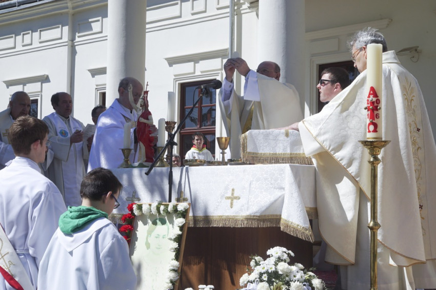 A szentmise végén köszöntötték az előző napon a Bódi Mária Magdolna életének útját végigjáró zarándokokat is.