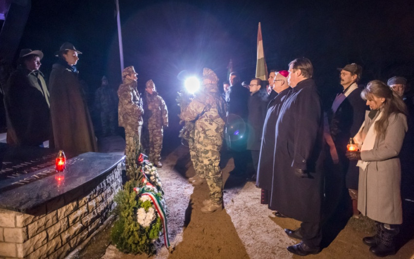 Spányi Antal megyéspüspök az emlékezőkhöz szólva elmondta: „Kötelességünket teljesítjük, amikor itt vagyunk, fejet hajtunk a küldetésüket önfeláldozó módon, hősiesen teljesítő katonák emléke előtt. Keresnünk kell, mi lehetett a lelkükben, milyen eszmék hevítették szívüket, milyen gondolatok adtak nekik erőt nap nap után, a reménytelenségben is, a kilátástalanságban is, hogy helytálljanak, katonához méltó módon parancsot teljesítsenek, küldetést hajtsanak végre. Nem kell találgatnunk, ha ezeket a fogalmakat próbáljuk tetten érni, hiszen a tábori posta hazahozta érzelmeiket, gondolataikat, és ezekből világosan kirajzolódik, fontos volt számukra és erőt adott nekik: a haza szeretete, a nemzet iránti kötelesség, a hit, a család szeretete, a hűség, a bajtársiasság, a hősies férfiasság. Mindez nem adott lehetőséget, hogy az életüket mentsék, de adott erőt, hogy emberként küzdjenek, és ha kell, hősként haljanak.