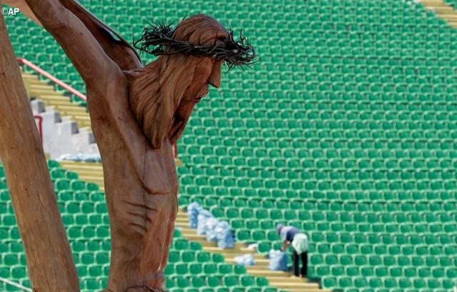 Kedden megérkezett továbbá a stadionba Ferenc pápa trónusa, melyet két bosnyák muzulmán műbútorasztalos faragott diófából az ország középső részén fekvő Zavidovići városban.