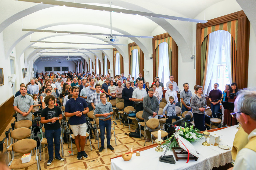 Nagy öröm az egyházmegye számára is, hogy 25 éve teljesítitek szolgálatotokat az Esztergom-Budapesti Főegyházmegye területén. Ma is aktuális Szent II. János Pál pápa tanítása. Ő hívta fel a figyelmet arra, hogy Isten Jézus Krisztusban mondta ki végső és teljes szavát az emberiség számára. Jézus pedig nem csupán filozófiai fogalom vagy legendák hőse, hanem valóságos történelmi személy. Benne mondta ki Isten végső és teljes szavát az emberről az emberiség számára. Jézus pedig vállalta, hogy szegény sorban szülessen. Lemondott arról is, hogy szabad és hatalmas nép fia legyen. Egy elnyomott, kis nemzet gyermekeként látta meg a napvilágot. De nem mondott le arról, hogy családban nevelkedjen, mert a család az emberi szeretet és az emberi kiteljesedés legnagyszerűbb színhelye.