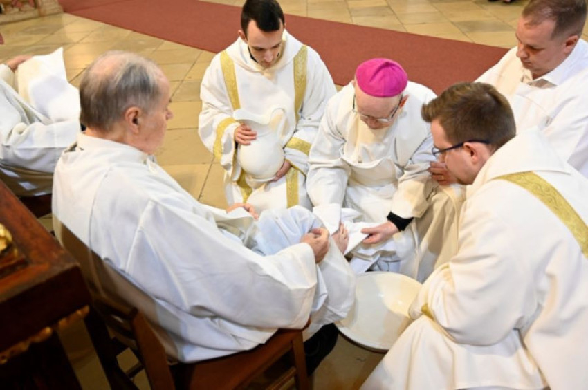 Jézus Krisztus és az apostolok utolsó vacsorájára emlékező, szimbolikus üzenetekben gazdag liturgiában a Pécsi Egyházmegye papnövendékei voltak a püspök szolgálatára.