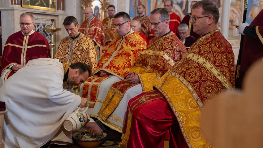 Nagycsütörtökön, amikor Jézus asztalközösségére és szenvedéseire emlékezünk, a Sátoraljaújhelyi Esperesi Kerület papságával együtt Orosz Atanáz megyéspüspök vezetett nagy alkonyati istentiszteletet Nagy Szent Bazil Liturgiájával a miskolci görögkatolikus székesegyházban.